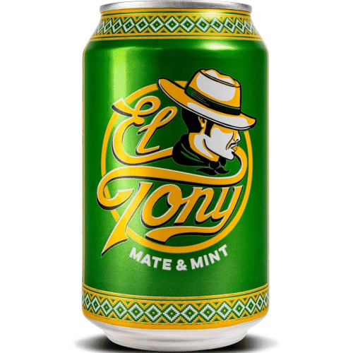 Frisch aufgebrühter Cold Brew Yerba Mate-Tee aus Südamerika, mit einem Hauch Minze verfeinert. El Tony Mate & Mint erfrischt dich mit seinem Hauch Minze doppelt. Kohlensäurehaltig